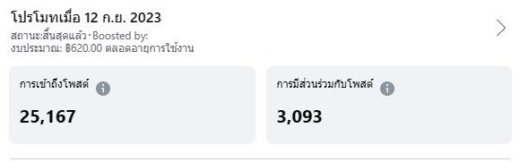 ดูแลโฆษณา Ads Facebook ให้มีต้นทุนต่ำที่สุด และคุ้มค่าที่สุด จากรูปจะเห็นว่า ใช้งบแค่ 600 แต่มีผู้เข้าถึงมากถึง 25,000 คน และมีผู้มีส่วนร่วมถึง 3,093 ครั้ง โดยเราจะดูจากสินค้าและบริการของท่าน พื้นที่ ราคา และกลุ่มลูกค้าเป้าหมายที่ถูกต้อง